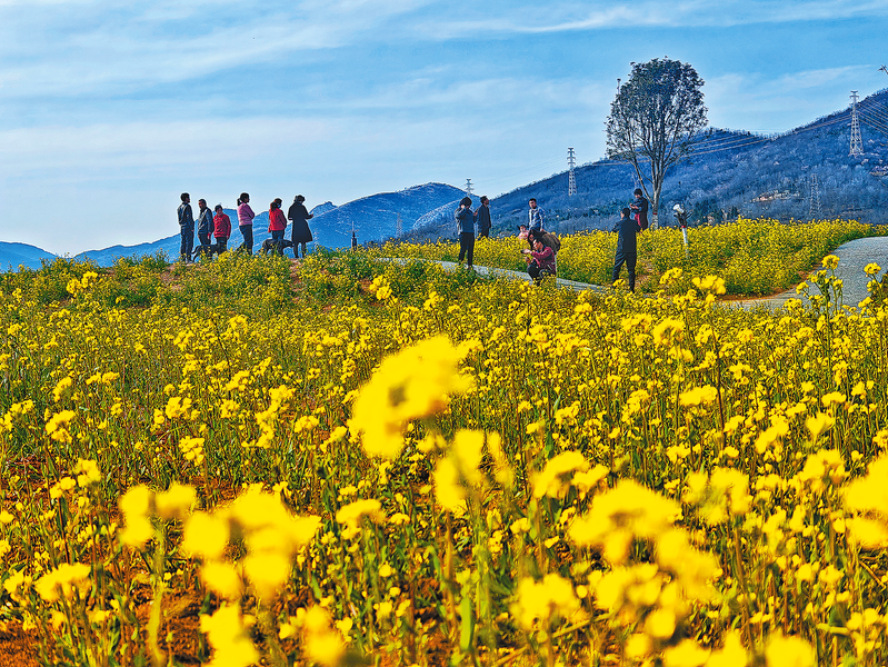 近日,商州區(qū)文衛(wèi)路與環(huán)北路丁字路口的文康園內,大片的油菜花次第盛開,為大地新添一抹金黃,吸引了不少游客前往踏青賞花,盡享春日美好時光。(本報記者 楊鑫 攝)