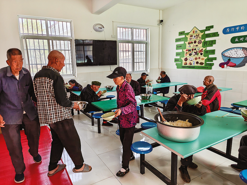 食堂運轉(zhuǎn)起來,光靠一兩個人忙不過來,于是黨員干部、志愿者與熱心村民一起上陣。有人掃地擦桌子,有人取餐遞餐具,還有人專門守在門口,攙扶著腿腳不便的老人就餐。一到飯點,飯菜香氣撲鼻,整個食堂都蕩漾著煙火氣和濃濃暖意。