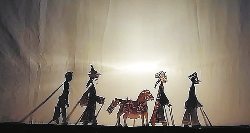 燈光熄滅,白色幕布亮起,在觀眾掌聲中,一場商州皮影戲拉開帷幕。幕布上,精致小巧的平面影人跟隨著劇情發(fā)展變換出不同的姿態(tài)和動作;幕布后,一個耍簽子的老人在燈光下用手操控著幾個不同的皮影偶人。