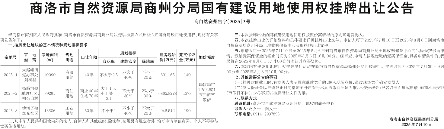 商洛市自然資源局商州分局國有建設(shè)用地使用權(quán)掛牌出讓公告