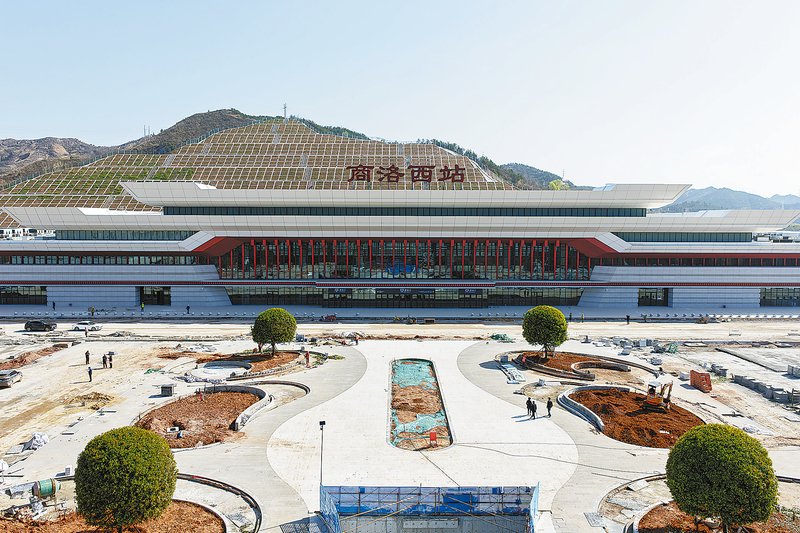 走進(jìn)高鐵新城建設(shè)現(xiàn)場,整體造型取自“商”字的商洛西站格外醒目:以層疊退臺的飛檐為骨架,米白色石材搭配朱紅色線條勾勒輪廓,處處彰顯秦嶺南麓地域文化特色。站前廣場上,挖掘機(jī)、運(yùn)輸車往來穿梭,切割機(jī)火花四濺,搶工期、趕進(jìn)度的熱潮撲面而來。這片曾經(jīng)的山坡荒地,正加速蛻變?yōu)樯讨莠F(xiàn)代化新城的門戶。