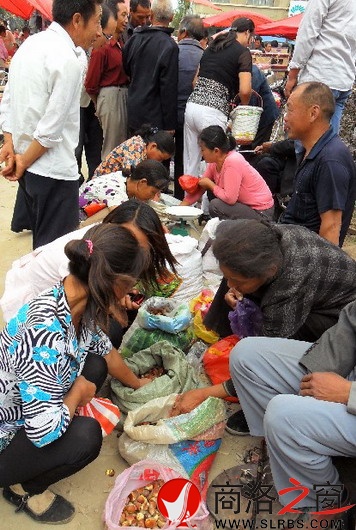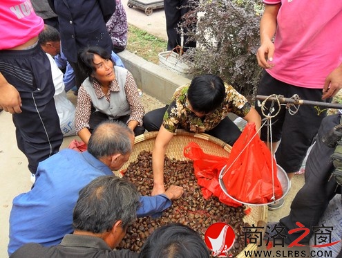 中秋節(jié)前后,洛南縣景村鎮(zhèn)的板栗大獲豐收并陸續(xù)上市。集市上山里農(nóng)民小包提、大袋裝的質(zhì)優(yōu)價廉的板栗,吸引得廣大顧客爭先搶購,外地客商也上門大量收購,集市交易十分火爆。圖為景村街板栗集市一角。