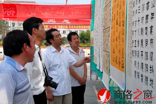 本網(wǎng)訊 6月29日,洛南縣政協(xié)在縣城中心廣場舉辦慶祝建黨90周年暨辛亥革命100周年書畫展,吸引了眾多市民前來觀看。展覽共分為中共黨史、偉人詩詞、名言警句、河山壯麗、紅色記憶五個部分,展出各類書法、繪畫作品157幅,表達了洛南各界人民群眾對黨的祖國的熱愛之情。(何勇/攝)