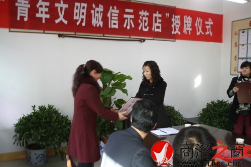 本網(wǎng)訊 (呂 琨 周燁明 攝)共青團商南縣委聯(lián)合地稅、工商等部門在全縣積極開展“青年文明誠信示范店”創(chuàng)建活動,有6家國企或私營門店經(jīng)多環(huán)節(jié)嚴格考核評選脫穎而出,并于近日被授牌命名。