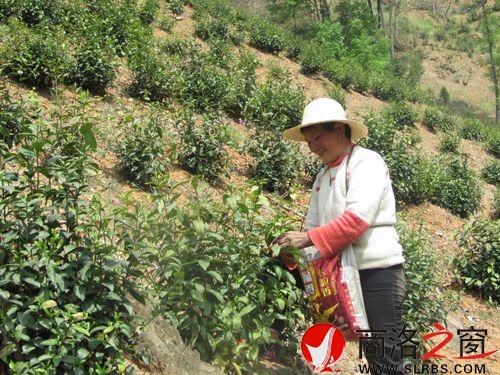 4月19日,記者到丹鳳縣武關(guān)鎮(zhèn)毛坪村采訪。在一個(gè)小岔溝里,記者看到,從溝底到山頂滿山坡都是一行行、一片片的茶樹,墨綠色的茶樹葉,油亮亮的,在陽(yáng)光下更加顯得青翠欲滴。特別是那些茶樹枝條尖上新生長(zhǎng)的嫩葉綠得能掐出油來。村里人正在忙著采摘茶葉,一打聽,正是記者要采訪的種茶大戶張明根夫婦。