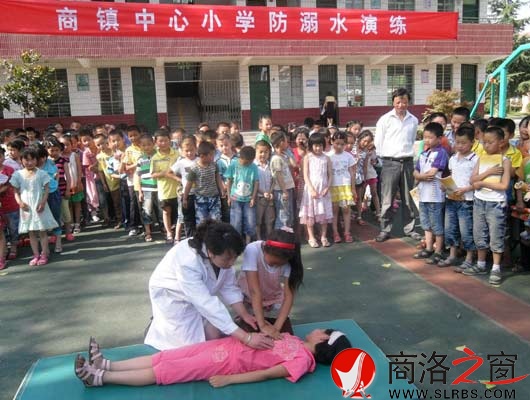 本次演練共分為三個環(huán)節(jié):第一,由學(xué)校主管安全工作的彭書武副校長進(jìn)行夏季安全知識輔導(dǎo)學(xué)習(xí),特別強(qiáng)調(diào)了夏季防溺水工作的重要性;第二,由校醫(yī)張醫(yī)生對學(xué)生游泳容易造成溺水傷亡事故的原因以及溺水時如何緊急求助、自救進(jìn)行了詳細(xì)的講解。并安排學(xué)生進(jìn)行了模擬練習(xí)。第三,擬設(shè)在三種情況下學(xué)生進(jìn)行求救、互救、自救的防溺水實(shí)踐演練。第一種情境是有兩名學(xué)生去游泳,一名被水溺后另一名向旁人發(fā)出求救演練;第二種情境是一名同伴被水溺后,另一名同伴用竹竿進(jìn)行互救的演練;第三種情境是在游泳的過程中發(fā)生抽筋等不利情況下自救演練;第三,在張醫(yī)生手把手的指導(dǎo)下,學(xué)生輪流觀看對溺水者進(jìn)行急救處理演練,然后個別同學(xué)扮演搶救者實(shí)踐對溺水者進(jìn)行胸外心臟按摩、清理溺水者口鼻內(nèi)污等。
