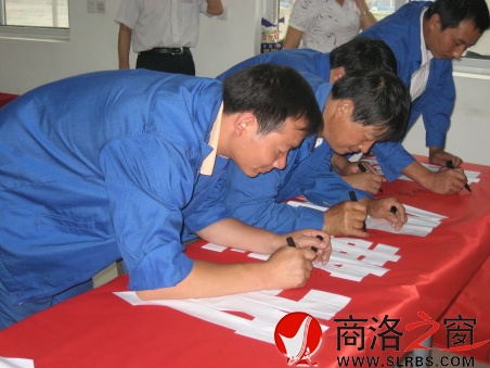 本網(wǎng)訊 (劉春榮 李玲)丹鳳縣總工會在全縣積極組織開展“安全承諾簽名”活動。為了給全縣工礦企業(yè)、交通運(yùn)輸、建筑等行業(yè)生產(chǎn)系牢扣緊安全生產(chǎn)網(wǎng)帶,連日以來丹鳳縣總工會在全縣范圍內(nèi)組織開展以“查隱患,促整改,遵章守紀(jì)保安全”為主題的安全生產(chǎn)承諾簽名活動。圖為一線工人在印有“查隱患,促整改,遵章守紀(jì)保安全”宣傳橫幅上簽名。