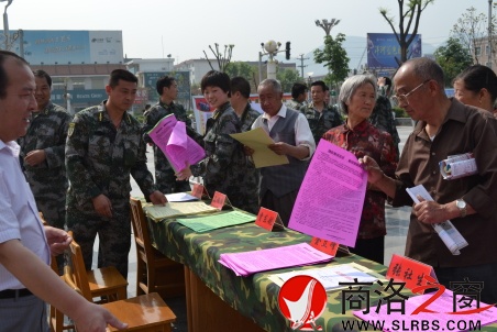 本網(wǎng)訊 (劉春榮 馬偉民 江波)在一年一度的“八一”建軍節(jié)到來(lái)之際,丹鳳縣人武部為進(jìn)一步加大對(duì)新《兵役法》知識(shí)的宣傳普及,激發(fā)廣大適齡青年踴躍報(bào)名應(yīng)征參軍,近日與龍駒寨鎮(zhèn)黨委政府聯(lián)合在縣城中心廣場(chǎng)舉辦新《兵役法》知識(shí)宣傳教育活動(dòng),現(xiàn)場(chǎng)有10余名青年積極進(jìn)行了兵役報(bào)名登記。圖為新《兵役法》知識(shí)宣傳教育活動(dòng)現(xiàn)場(chǎng)。
