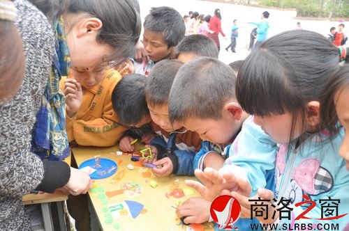 商洛日報訊(朱恢軍 李正杰)四月二日,柞水縣杏坪鎮(zhèn)十余名志愿者來到中臺小學為留守兒童帶來了字典、保健手冊等,并和他們一起做游戲。圖為小朋友在志愿者的幫助下用彩色橡皮泥做房子。