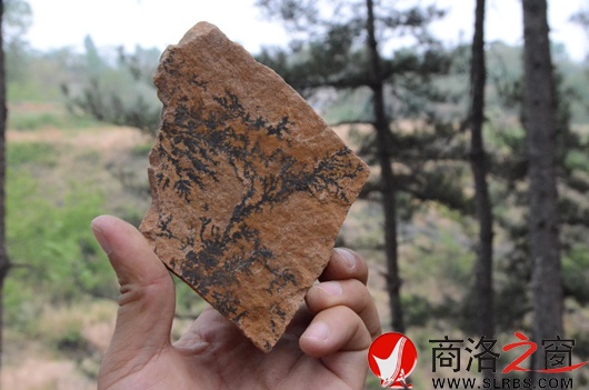 5月14日,記者來到洛南縣城南饅頭山,在張先生帶領(lǐng)下,在山的南溝里看到,溝兩邊長(zhǎng)滿了郁郁蔥蔥的大松樹,緊挨地面的山坡上裸露著黃褐色的板狀巖石,山溝里隨處可見一些零碎的片石。“你看,這個(gè)上邊有個(gè)小樹葉!”在亂石中翻撿尋找的張先生說。隨后,記者也在一處石頭堆中找到了樹葉長(zhǎng)在石頭中的石片,石片中的樹葉葉脈清晰可見,顏色為黑色。