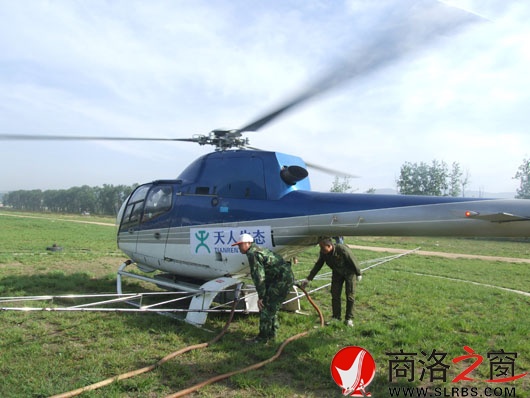 商洛日?qǐng)?bào)訊 丹鳳縣近日首次使用飛機(jī)對(duì)商山、寺坪、資峪溝及鐵峪鋪等部分林區(qū)的3萬(wàn)多畝林地進(jìn)行飛機(jī)高空噴藥防蟲(chóng)作業(yè)。圖為飛機(jī)正在準(zhǔn)備進(jìn)行預(yù)防葉峰蟲(chóng)病害高空噴灑藥物作業(yè)。(劉春榮 王毅 攝)