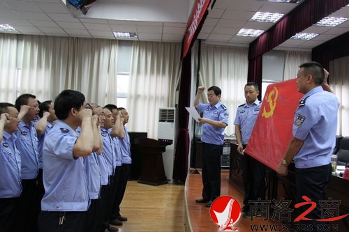 商洛日?qǐng)?bào)訊(邢光銀 寧遠(yuǎn)鵬)六月二十四日,鎮(zhèn)安縣公安局黨委以莊重?zé)崃业男问綉c祝中國(guó)共產(chǎn)黨建黨九十二周年。一百五十余名黨員民警面對(duì)黨旗莊嚴(yán)宣誓,重溫入黨誓詞,通過多種形式慶祝黨的生日。