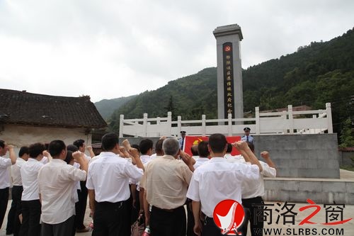 商洛日?qǐng)?bào)訊(王榮金)7月1日,山陽(yáng)各級(jí)黨組織紛紛舉行建黨92周年紀(jì)念活動(dòng)。圖為縣國(guó)土資源局黨支部30多名黨員,在袁家溝鄂陜邊區(qū)蘇維埃政府紀(jì)念碑前重溫入黨誓詞。