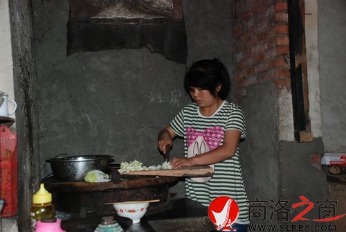 6月22日下午,天下著小雨,筆者來到了位于洛南縣永豐鎮(zhèn)楊村一組的張妮家。我們看到祖孫二人住在一座有些陳舊的三間土房內,院落雖然有些破舊,屋內也沒有一件像樣的家具,但卻打掃的干干凈凈,室內物品也擺放的井井有條,鍋臺簡單潔凈。在東側一間光線有點昏暗的房間土炕上,我們看到,張妮正側坐在土炕邊沿給臥病在床的奶奶霍琴娃一勺一勺地喂著米粥,還不時地用毛巾幫奶奶擦著嘴角。