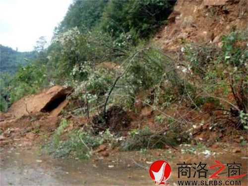 商南普降大雨致使商鄖公路多處塌方