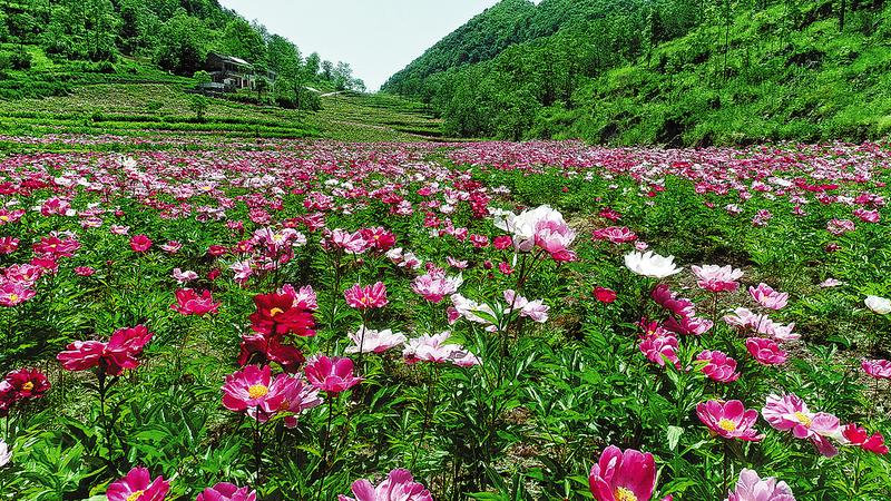 這片如畫的芍藥地,原本是當(dāng)?shù)厝罕姺N植玉米等作物的,由于海拔高等原因產(chǎn)量不高,辛苦一年也帶不來多少收入。2017年,鎮(zhèn)安縣天玉具體化飲品有限公司經(jīng)過考察,結(jié)合鎮(zhèn)村制定的產(chǎn)業(yè)發(fā)展規(guī)劃,在這里發(fā)展起了藥材種植。