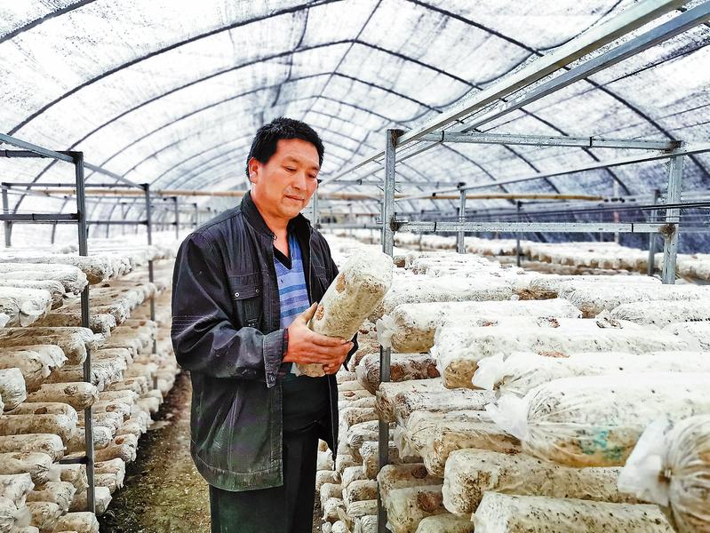 “這個菌棒長得很好,你看這菌絲。”說話間,夏禮成從架子上拿起一個尚未長好的菌棒向記者展示,只見白色的菌絲已經(jīng)布滿,生長情況良好。“等菌棒從白色變成鐵銹紅色就算成熟了,再過一個多月就可以出菇了。”他一邊翻動著菌棒一邊對記者說,自己以前一直在外面打工,收入不穩(wěn)定不說,還沒辦法照顧到家里。2018年,夏禮成與其他5戶種植戶在村干部的鼓勵下認(rèn)領(lǐng)了2萬袋菌棒,積極發(fā)展香菇種植。“你別看我現(xiàn)在說得頭頭是道,我以前根本沒種過,主要是跟技術(shù)員一點(diǎn)點(diǎn)學(xué)的,這兩年也摸索出了經(jīng)驗,也能給其他種植戶指導(dǎo)。”夏禮成對記者說,在他們的精心培育下,當(dāng)年的香菇喜獲豐收,質(zhì)量也得到了客商的認(rèn)可,戶均收入5萬多元,一下子讓他信心大增。