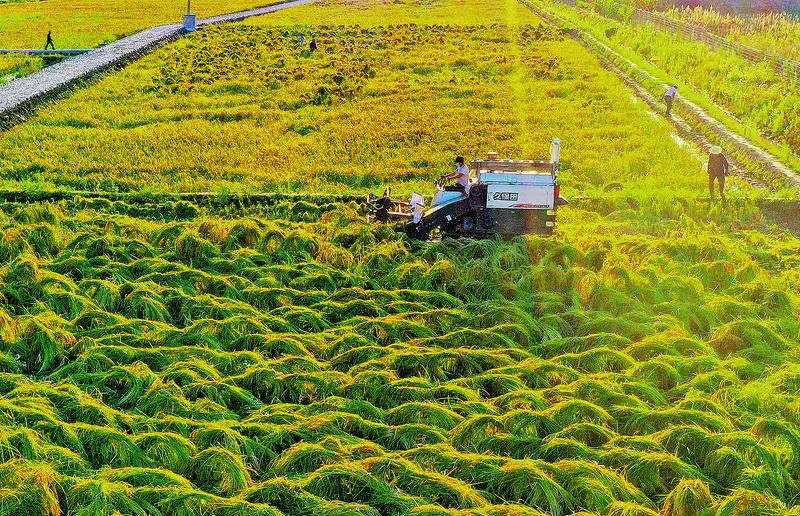 秋風(fēng)送稻香,辛勤換來一年豐收季。9月21日,鎮(zhèn)安縣西口回族鎮(zhèn)嶺鴻生態(tài)農(nóng)業(yè)今年試種水稻進(jìn)入成熟期,金燦燦的稻穗在風(fēng)中搖曳,一臺收割機(jī)在金黃色的稻田里來回穿梭,有序的展開收割作業(yè),呈現(xiàn)出一幅忙碌的豐收圖景。據(jù)了解,鎮(zhèn)安嶺鴻生態(tài)農(nóng)業(yè)整體規(guī)劃發(fā)展小龍蝦、稻蝦及蟹稻連作基地1060畝,今年試種的本地嶺溝紅米和東北香米近100畝,可收獲稻米1.5萬多公斤,預(yù)計(jì)產(chǎn)值可達(dá)40多萬元。(倪方海 攝)