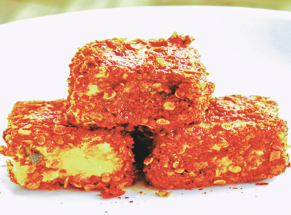 豆腐晾涼了以后,母親細(xì)心地將它切成兩三厘米見方的小塊,用潔白的紗布蓋好,放在溫度相對(duì)恒定且沒有光亮的地方,最好是家里放紅薯的地窖,因?yàn)槟抢餃囟缺容^固定。等到豆腐變黑發(fā)霉,上面長出白乎乎的長毛后,拿出來,撒上鹽、辣椒面以及五香大料細(xì)末,澆上少量白酒攪拌均勻,裝入壇子密封一段時(shí)間,就可以拿出來食用了。