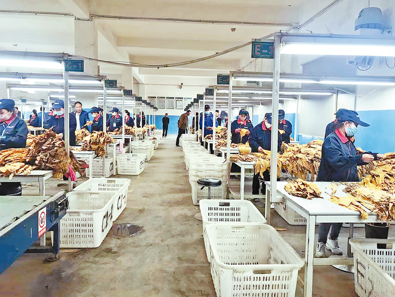 青銅關(guān)梅花煙站職工在進(jìn)行烤煙分級(jí)