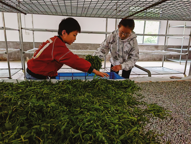 記者順著彎曲的山路,來到中坪村7組養(yǎng)蠶大戶張銀蓮的院子,老兩口正在修補(bǔ)蠶具、打掃蠶房,為即將到來的養(yǎng)蠶季忙碌前期工作。“你看我家門前這些坎邊桑和密植桑園,前不久都進(jìn)行了殺蟲施肥,那是我們農(nóng)戶人家致富的依靠,得細(xì)心照顧。”張銀蓮介紹,以前養(yǎng)蠶不懂技術(shù),有時(shí)溫度控制不好蠶苗孵不出來,有時(shí)遇上連陰雨天管理不善出現(xiàn)大面積僵蠶,自從村上建了小蠶共育工廠,養(yǎng)蠶就省事多了,只需要把三齡蠶帶回家喂養(yǎng)就行了,平時(shí)有技術(shù)員上門服務(wù)。這幾年,張銀蓮兩口靠勤勞從桑園里蹚出了一條小康路,每年養(yǎng)三季蠶收入就是上十萬元,有了不小的積蓄后,老兩口還幫助孩子們?cè)诳h城和西安買了房子。