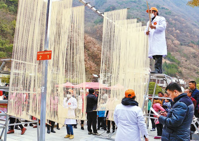 鎮(zhèn)安縣秦綠食品有限公司經(jīng)理余之超在做大做強(qiáng)木耳產(chǎn)業(yè)的同時(shí),于2018年成立了云蓋寺鎮(zhèn)手工掛面產(chǎn)業(yè)協(xié)會(huì),聘請(qǐng)?jiān)粕w寺鎮(zhèn)手工掛面技藝傳承人,發(fā)展手工掛面產(chǎn)業(yè)。“云蓋寺鎮(zhèn)手工掛面口感筋道、營(yíng)養(yǎng)豐富,是饋贈(zèng)親朋好友的佳品。目前,我們?cè)粕w寺鎮(zhèn)手工掛面主要銷往西安、重慶、上海、蘭州等城市。”余之超介紹,2020年8月,由她牽頭制定的陜西省地方標(biāo)準(zhǔn)DB61/T1374-2020地理標(biāo)志產(chǎn)品——云蓋寺手工掛面被陜西省市場(chǎng)監(jiān)督管理局發(fā)布,進(jìn)一步提高了手工掛面的品質(zhì)和聲譽(yù),讓云蓋寺鎮(zhèn)手工掛面在省內(nèi)外聲名遠(yuǎn)揚(yáng)。