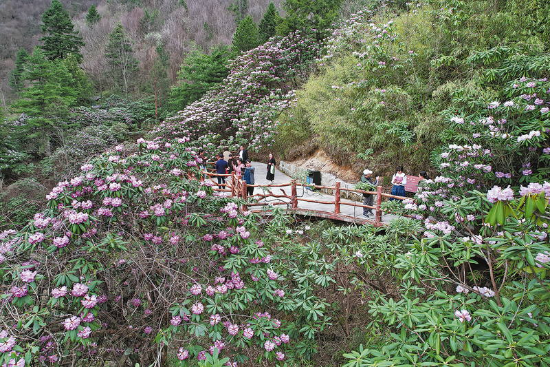 近日,鎮(zhèn)安縣木王國(guó)家森林公園的杜鵑花相繼盛開,吸引不少游客前來踏青賞花。據(jù)了解,木王國(guó)家森林公園擁有西北連片面積最大的杜鵑林帶,分布面積千余畝,品種達(dá)12種之多,素有“千山杜鵑”之美譽(yù),花期從3月中旬開始,一直持續(xù)到4月中下旬。 (本報(bào)記者 李小龍 攝)