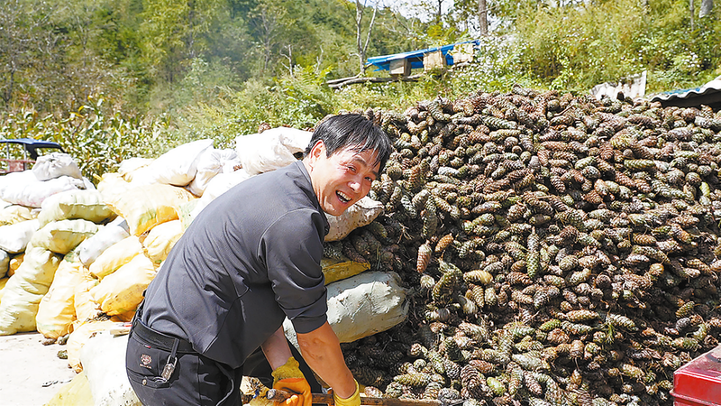劉由成今年新購(gòu)置了脫粒機(jī),將收購(gòu)來(lái)的松塔直接加工成松子再外銷(xiāo),不僅提升了產(chǎn)品附加值,還增加了利潤(rùn),也極大地降低了運(yùn)輸成本。僅靠收購(gòu)、加工松塔這一項(xiàng),他和妻子一年的收入就達(dá)10多萬(wàn)元。