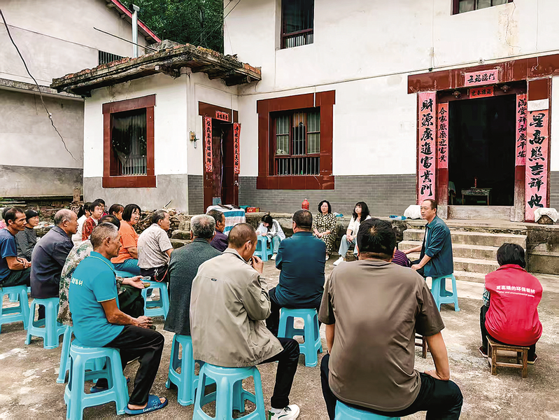 9月9日,鎮(zhèn)村干部在嶺溝村二組召開院落會,面對面與群眾講政策、聊家常、聽心聲、解難題。