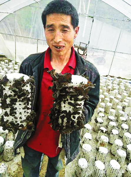 在中坪基地確定貧困戶借耳時,殘疾人貧困戶朱立印提出了申請。村干部看到他一只腳殘疾,行動不便,年齡已有65歲,妻子也是聾啞人,建議他不參加這個項目,老人家卻說:“我還能動,我不能拖大家后腿,等著國家給我兜底扶貧。”大家都被他這種不等不靠的精神所感動,基地其他貧困戶都來給他幫忙刺孔、掛袋,前期任務(wù)順利完成。經(jīng)過20多天的細(xì)心管理,看到拱出的耳花和長大的木耳,朱立印輕撫著菌袋激動地向村干部和技術(shù)員說:“我們農(nóng)村人養(yǎng)兒防老,指望兒子。這木耳就是我兒子啊,有了木耳,脫貧就有了指望。”
