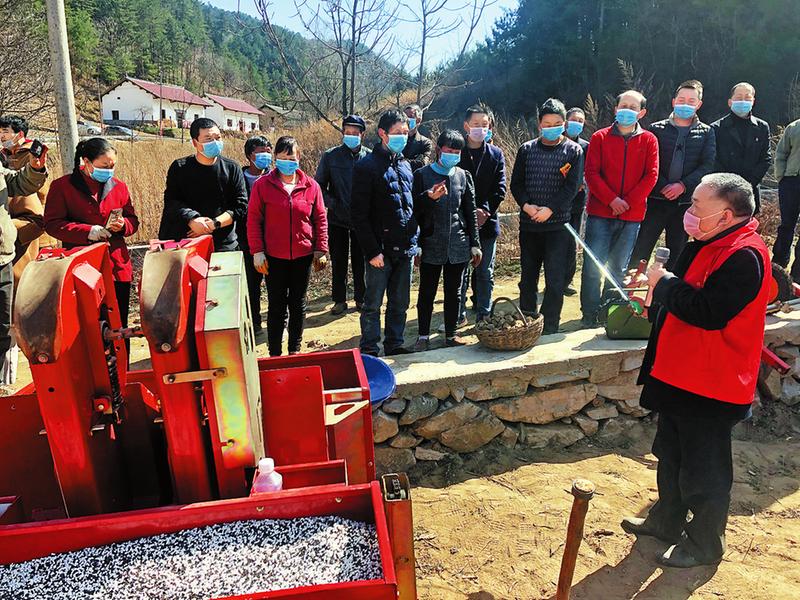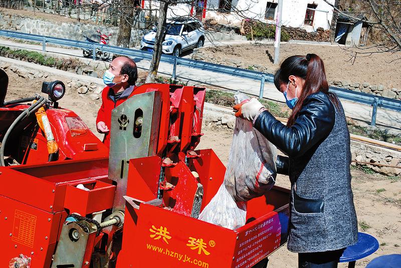 今年43歲的吳積芹是柞水縣紅巖寺鎮(zhèn)閆坪村人,家中6口人,兩位老人年事已高,常年患病,孩子都在上學(xué),丈夫身體也不好,做不了重活,家中的生產(chǎn)重?fù)?dān)都?jí)涸谒蝗松砩?。今春她家種植了4畝地的馬鈴薯,靠吳積芹一個(gè)人的話,得忙活一周時(shí)間??h農(nóng)業(yè)機(jī)械化推廣中心到閆坪村宣傳機(jī)播馬鈴薯時(shí),吳積芹第一個(gè)報(bào)名播種自己家的地。3月18日,市農(nóng)業(yè)農(nóng)村局的馬鈴薯種植專家來到吳積芹家的田頭,給村民講解如何挑選馬鈴薯種和如何激活休眠芽。農(nóng)機(jī)專業(yè)合作社的工作人員將播種機(jī)開進(jìn)吳積芹家的地里,十來分鐘就播種好了半畝地,這樣的速度吳積芹想都想不到。