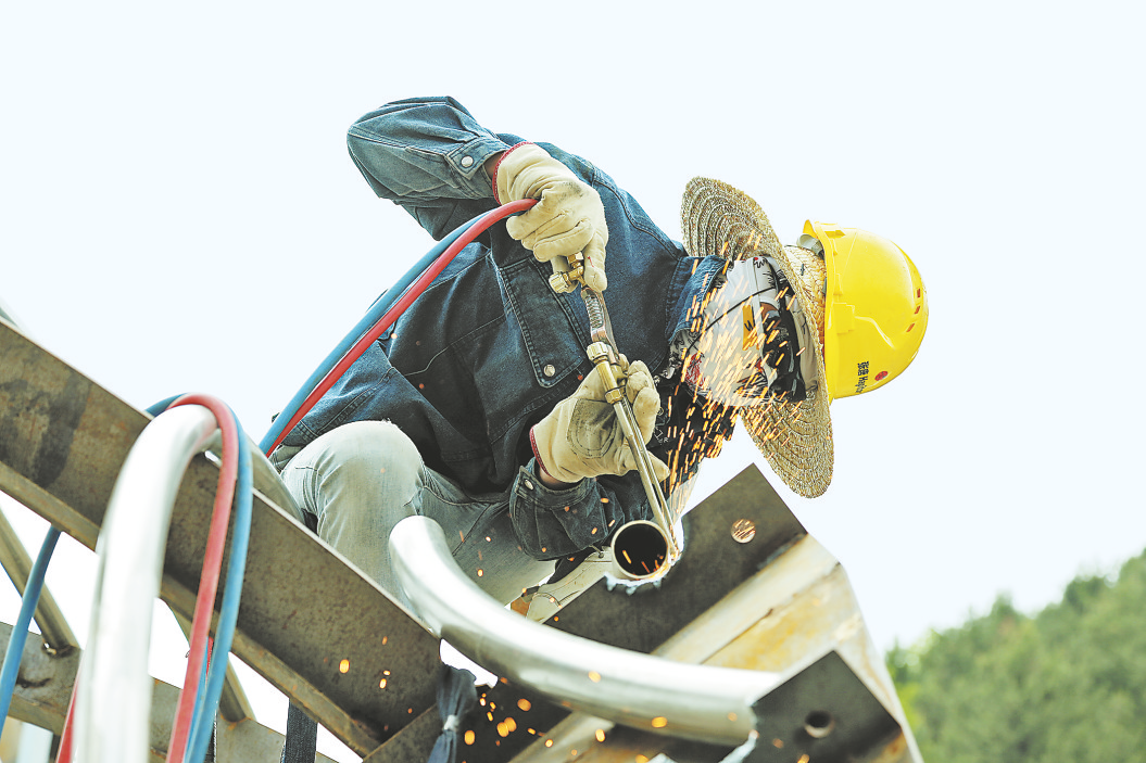在云山湖森林康養(yǎng)度假區(qū)項目現(xiàn)場,工人頂著烈日加緊施工。