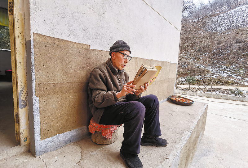 3月6日早晨,劉翠林在自家門口認(rèn)真讀著經(jīng)典書籍《開國(guó)將軍》。