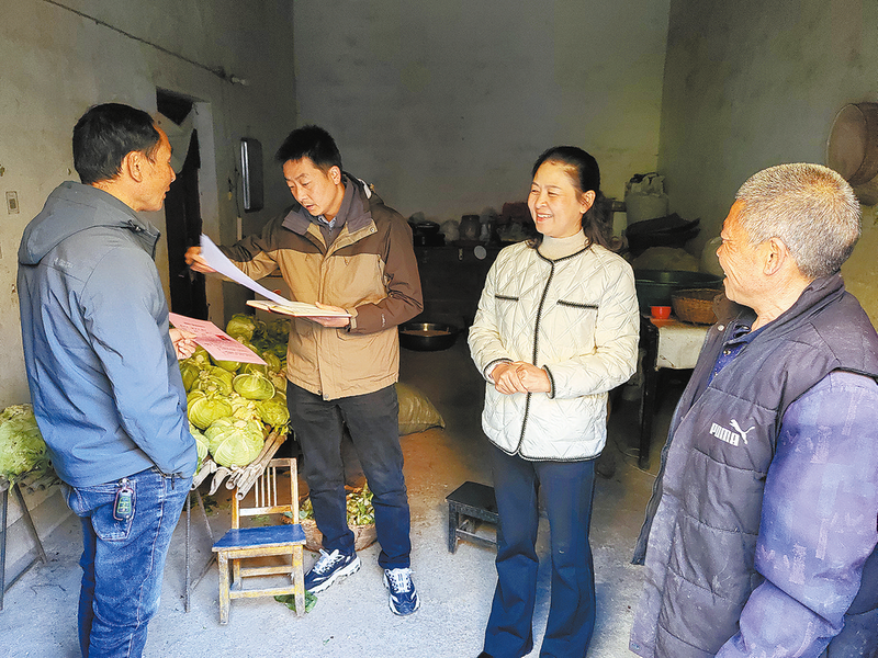 丁韜(中)入戶察看新合村重點(diǎn)監(jiān)測戶日常生活情況