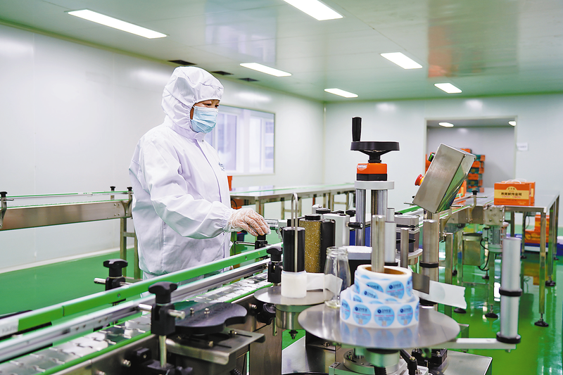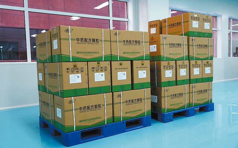 工人對(duì)中藥顆粒進(jìn)行分類(lèi)包裝