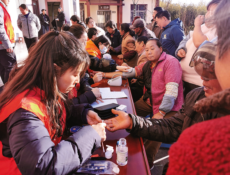 義診過程中,一位患有高血壓的老人憂心忡忡地前來咨詢。南京鼓樓醫(yī)院專家李政仔細(xì)地為老人測量血壓、聽診心肺,查看老人平時服用的藥物后,為老人調(diào)整了用藥方案,并耐心叮囑老人日常飲食要低鹽低脂、適度運(yùn)動、保持心情舒暢。老人聽后,緊鎖的眉頭逐漸舒展,連聲道謝:“平時去醫(yī)院掛號排隊(duì)不容易,今天在家門口就能讓專家給看病,真是太好了!”
