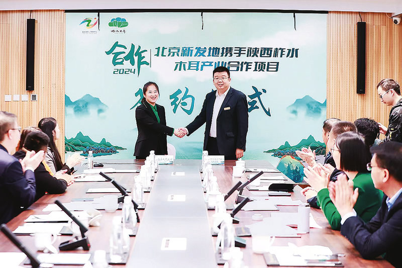 2024年10月16日,陜西·柞水木耳北京專場招商推介座談會舉行,圖為簽約儀式。